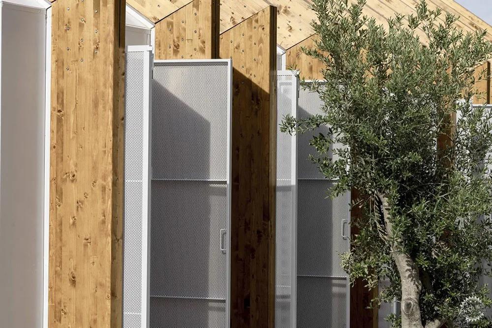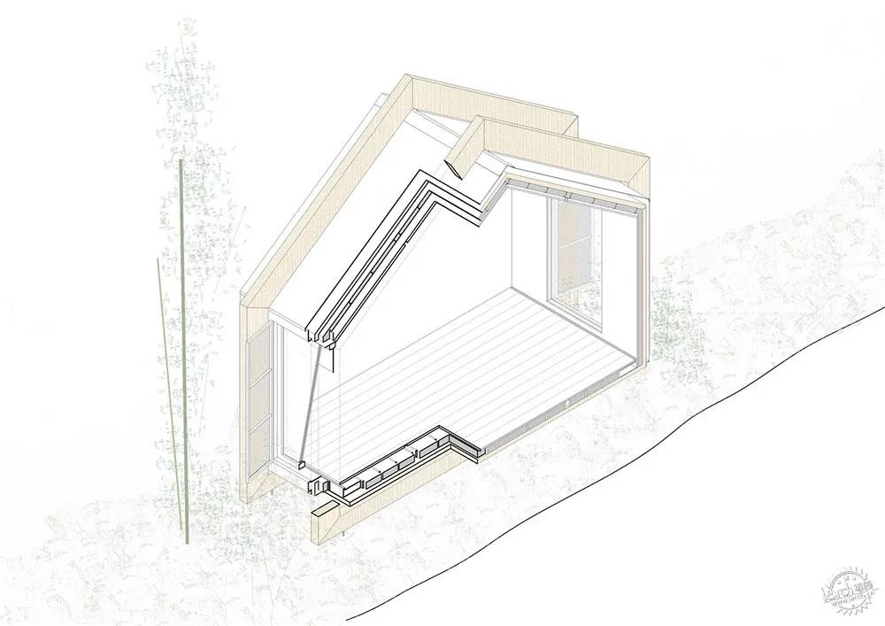 代表性與象征性形象。在建筑的外部,建筑師通過技術和形式來表達整體的代表性與象征性特征,建筑師希望項目簡約、干凈、優雅,并且通過緊湊的山墻體量構成了建筑的原型。項目較為抽象,白色的體量強調了木制結構的特征,展館的概念也很好地表達了其空間本質,即建筑。