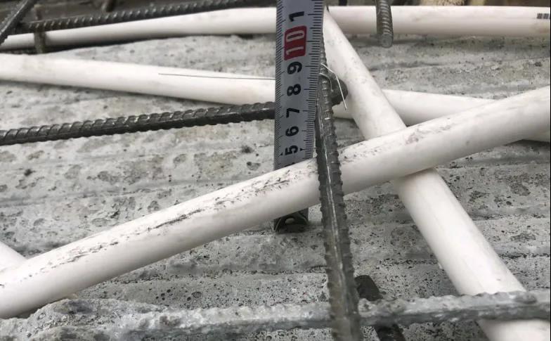 疊合板施工中若存在以下誤差將對疊合板厚控制不利,如預制底板生產厚度正公差、保護層正公差、鋼筋及管線直徑正公差等。多種誤差累積也是導致疊合板厚度超厚的原因之一。