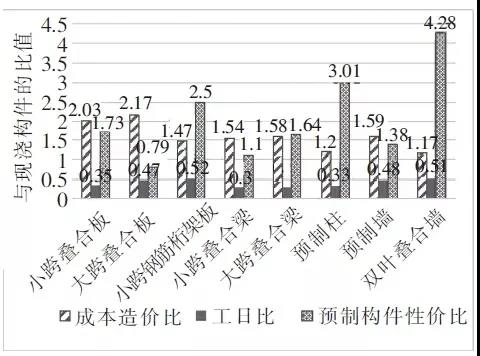 1.相比現澆構件,疊合板造價增加最多,增長幅度接近2倍;其次為預制墻,增長幅度接近1.5倍,應當避免。