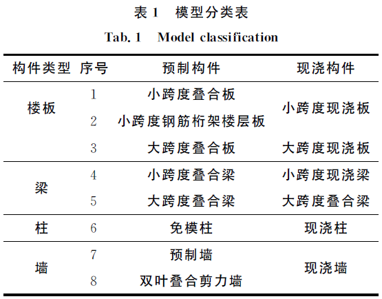 首先對柱、梁、板、墻四種構件的現澆與裝配式模型進行建模及內力和配筋計算,根據計算結果設計預制構件施工方案.分類情況見表1。